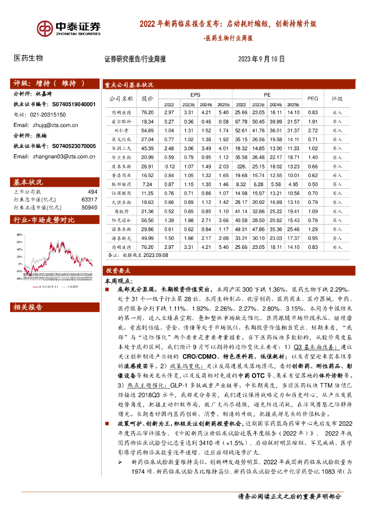 中泰证券:医药生物行业周报:2022年新药临床报告发布:启动耗时缩短,创新持续升级.pdf