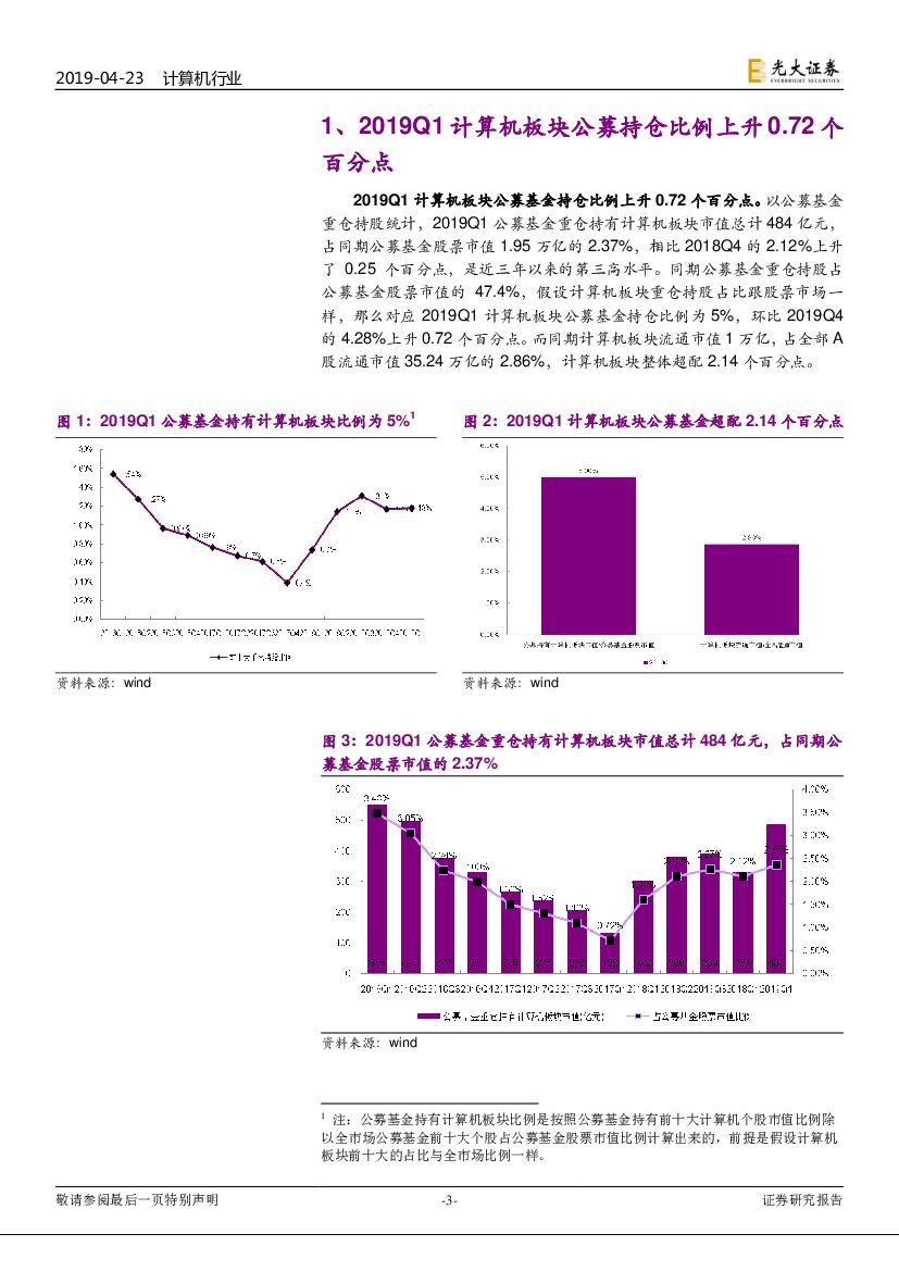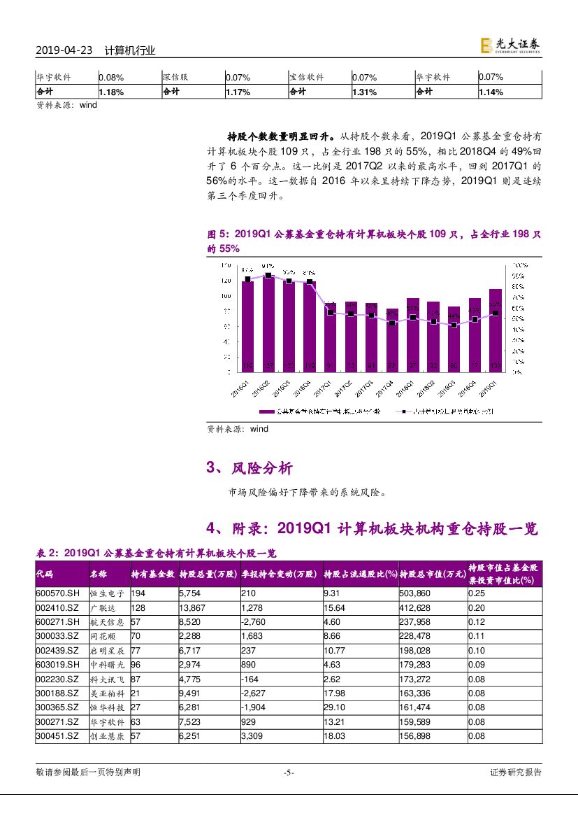 光大证券:2019Q1公募基金计算机板块持仓跟踪:持仓比例上升0.72个百分点,集中度明显下降.pdf