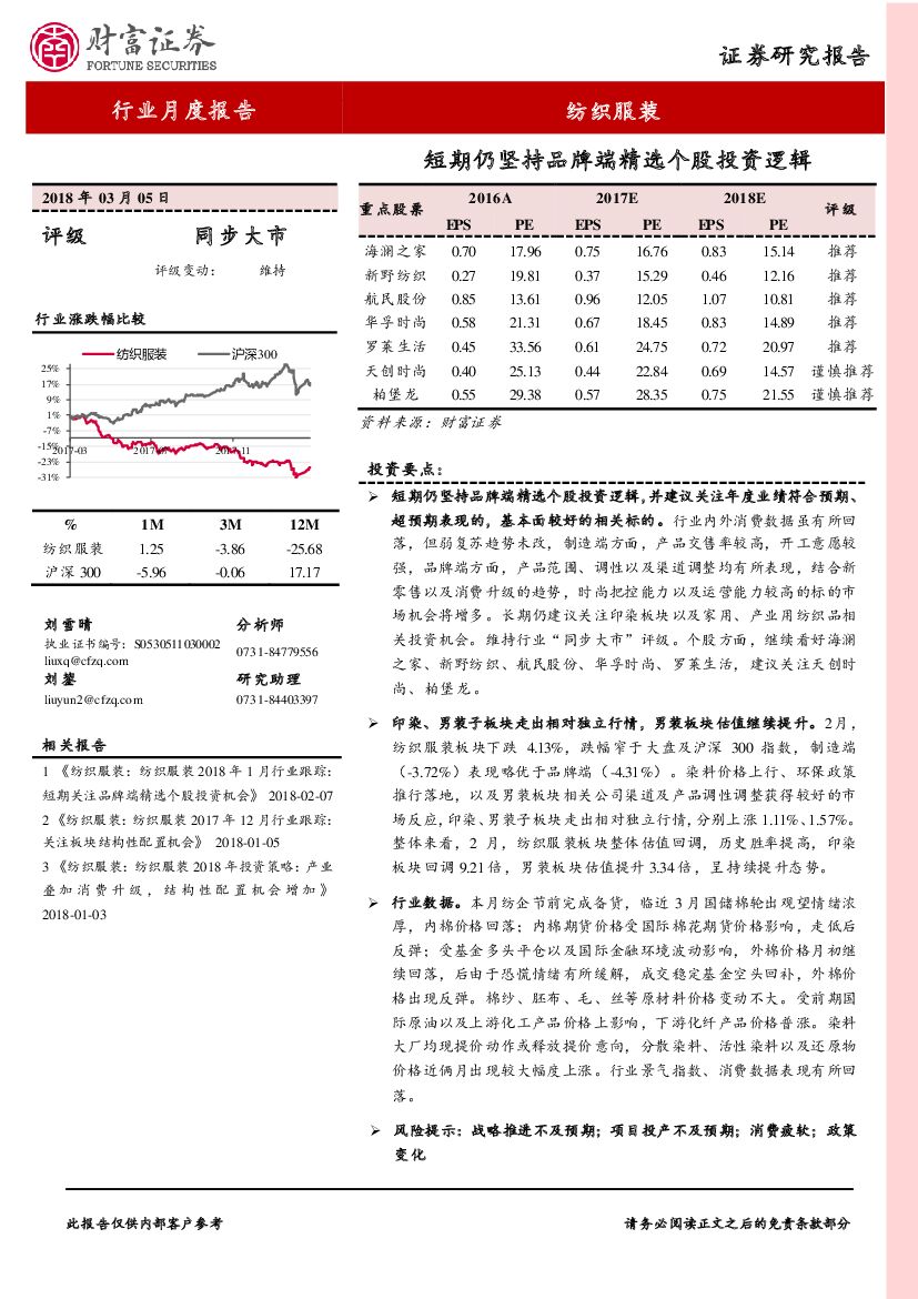 财富证券:纺织服装行业月度报告:短期仍坚持品牌端精选个股投资逻辑.pdf