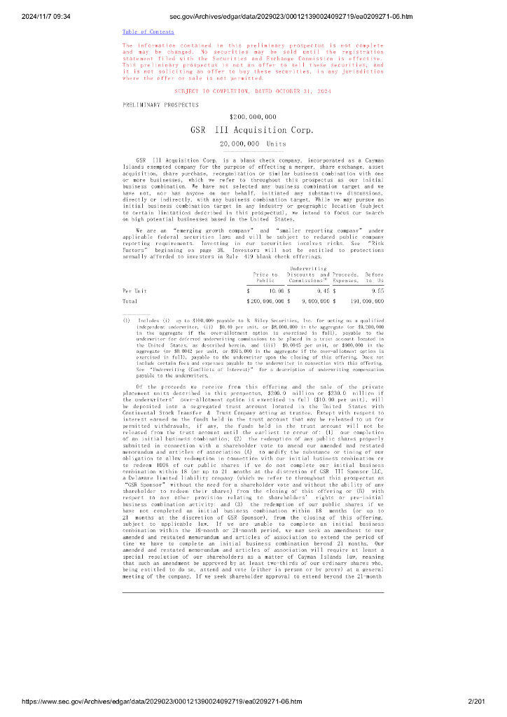 GSR III Acquisition Corp.美股纳斯达克IPO上市招股说明书.pdf