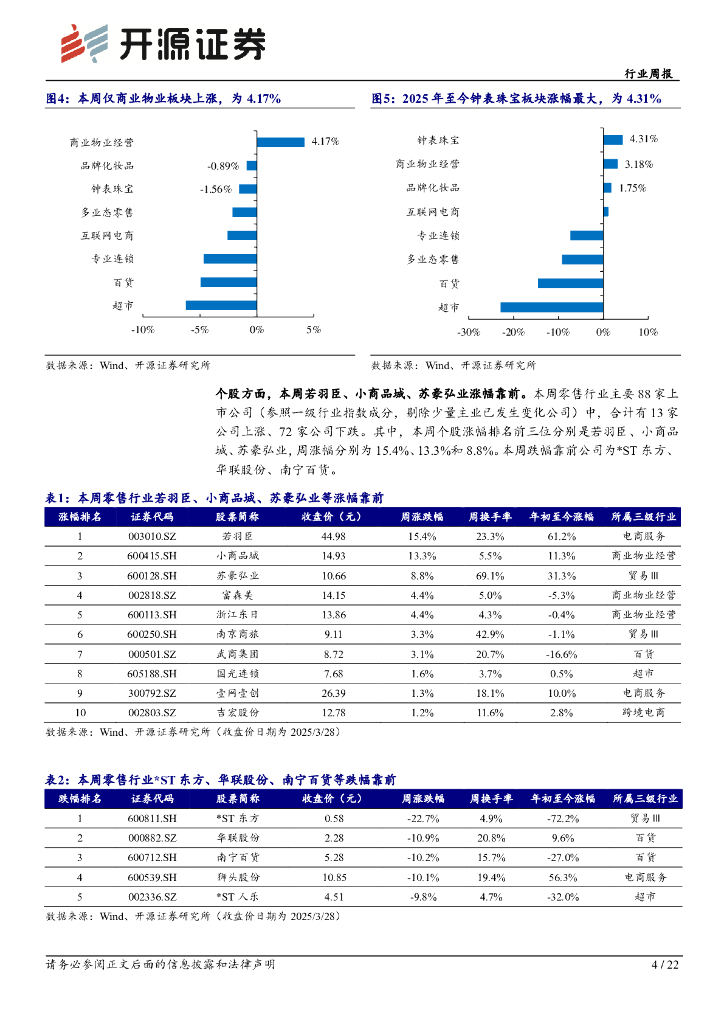 开源证券:商贸零售行业周报:业绩密集披露,关注高增持续兑现及结构优化的标的.pdf