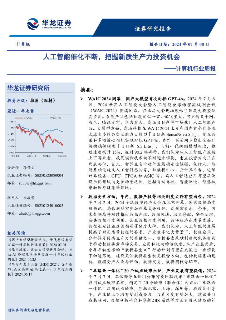 华龙证券:计算机行业周报:人工智能催化不断,把握新质生产力投资机会.pdf