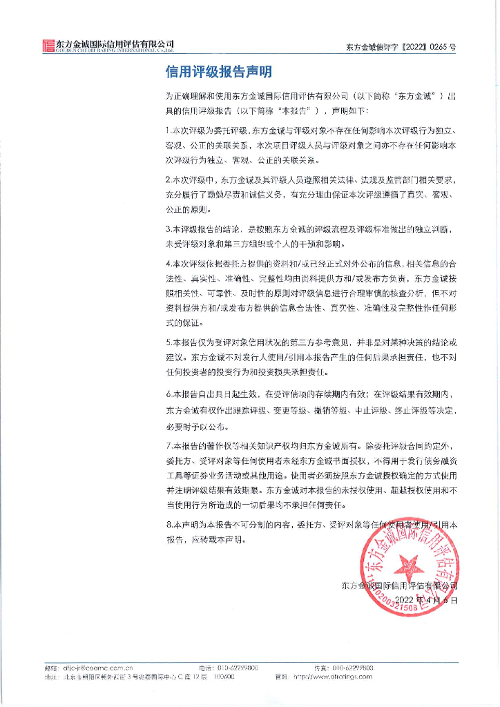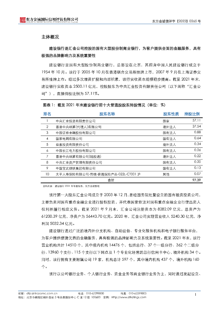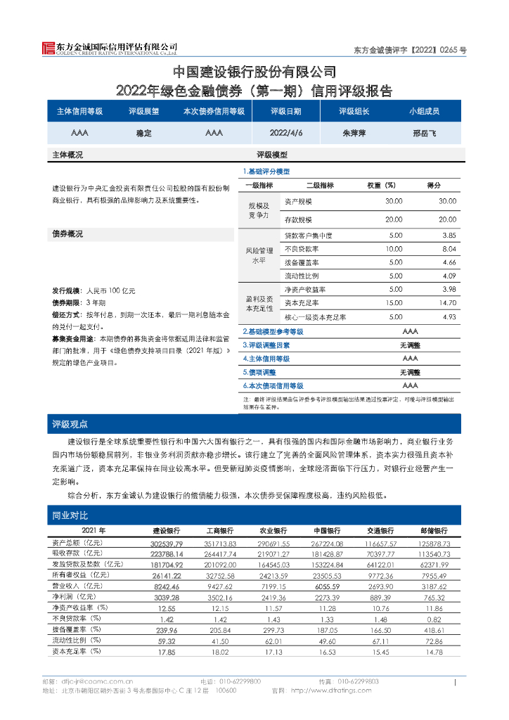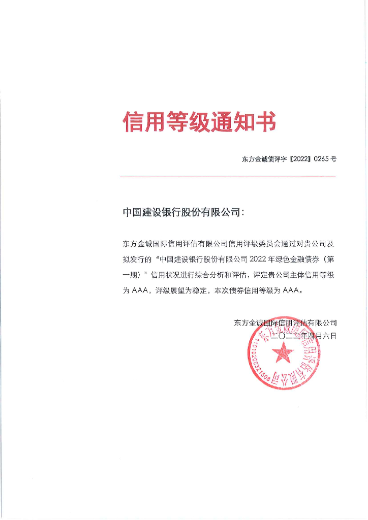 东方金诚:中国建设银行股份有限公司2022年绿色金融债券(第一期)信用评级报告及跟踪评级安排说明.pdf