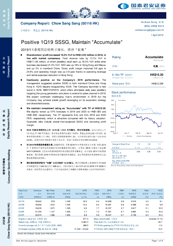 国泰君安证券(香港):周生生(00116)港股公司研究报告-2019年1季度同店销售正增长,维持“收集”.pdf