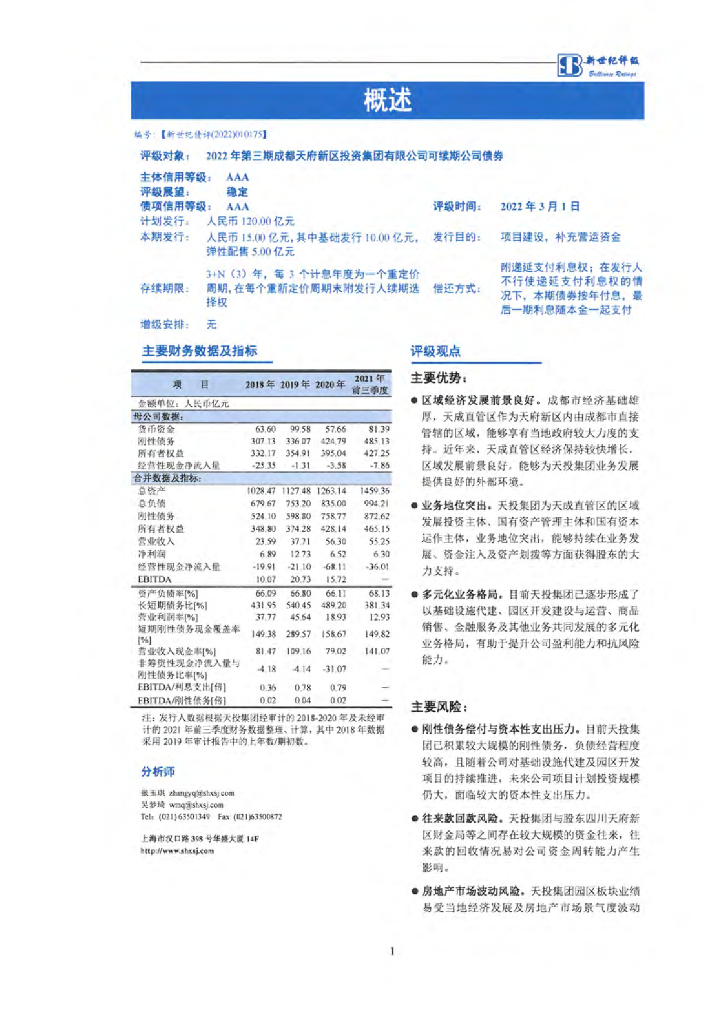 新世纪:2022年第三期成都天府新区投资集团有限公司可续期公司债券信用评级报告.pdf