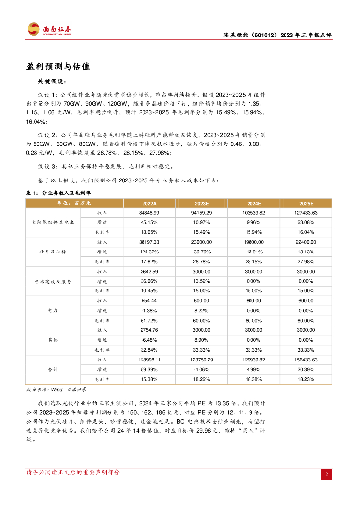西南证券:隆基绿能(601012)-2023年三季报点评:短期业绩低于预期,HPBC差异化竞争.pdf