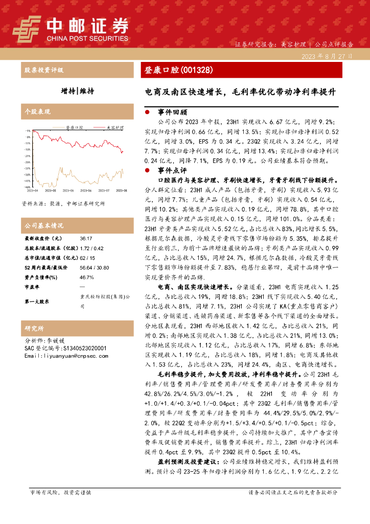 中邮证券:登康口腔(001328)-电商及南区快速增长,毛利率优化带动净利率提升.pdf