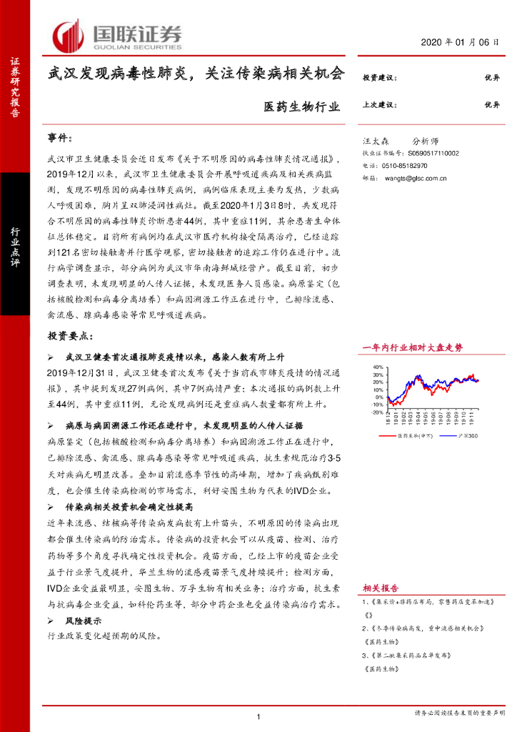 国联证券:医药生物行业:武汉发现病毒性肺炎,关注传染病相关机会.pdf