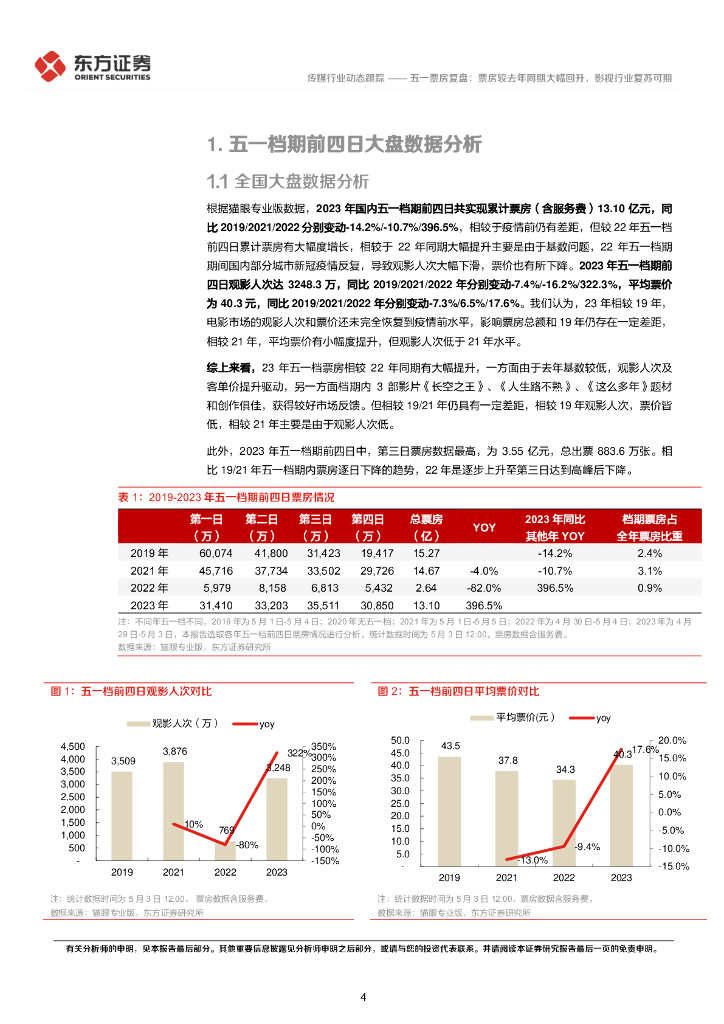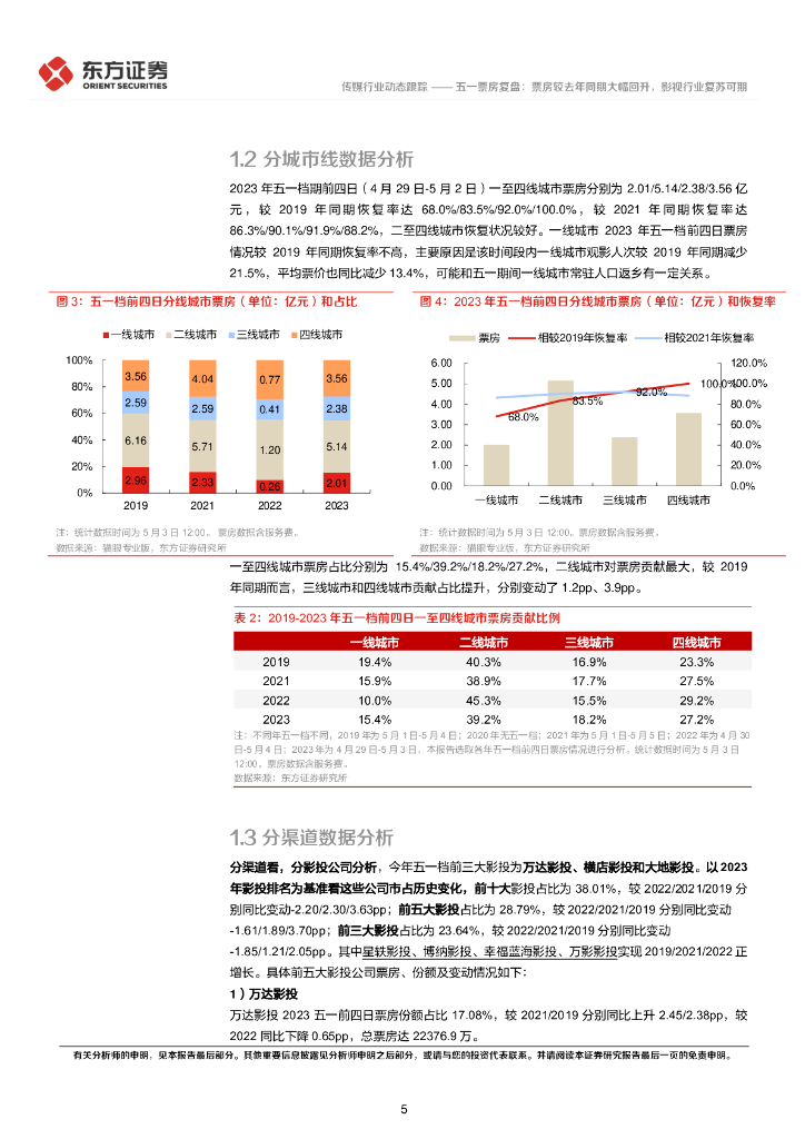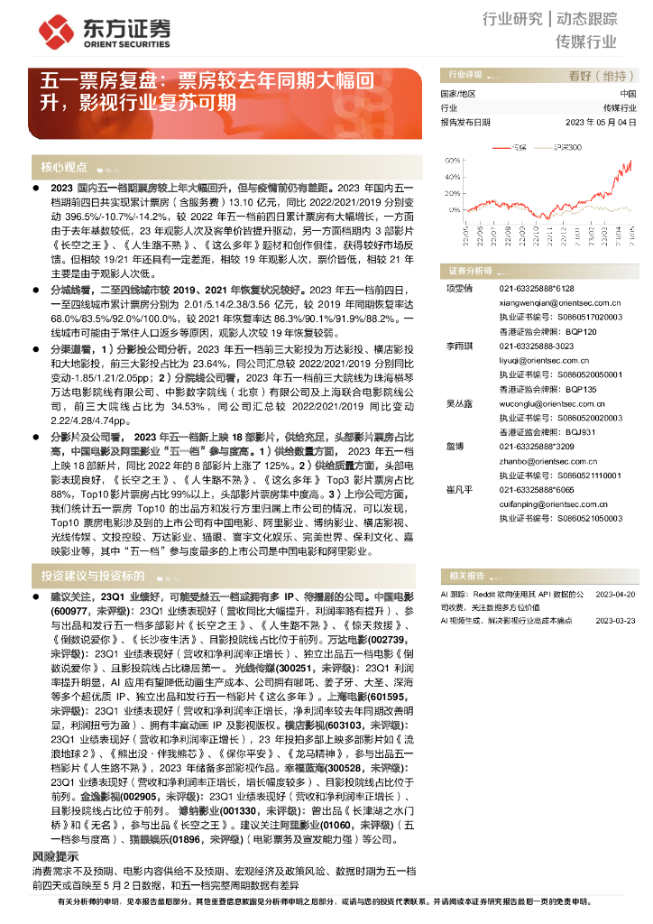 东方证券:传媒行业动态跟踪:五一票房复盘:票房较去年同期大幅回升,影视行业复苏可期.pdf