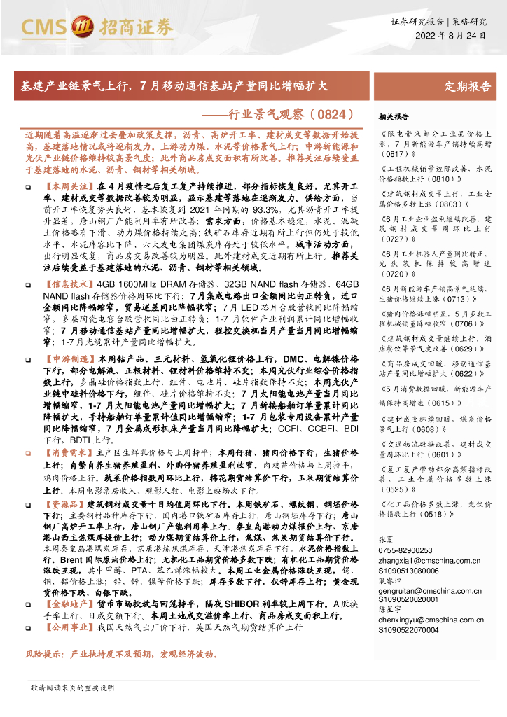 招商证券:行业景气观察(0824):基建产业链景气上行,7月移动通信基站产量同比增幅扩大.pdf