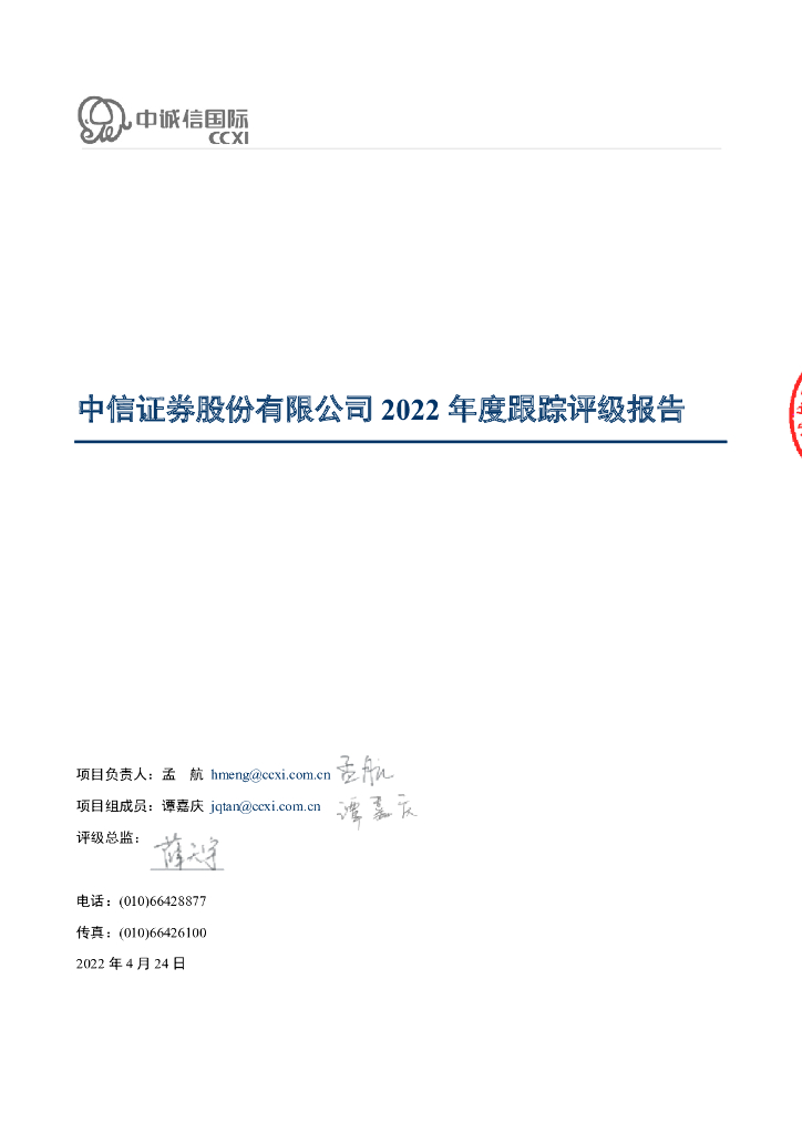 中诚信:中信证券股份有限公司2022年度跟踪评级报告.pdf