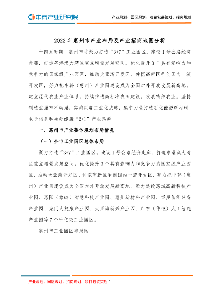 2022年惠州市产业布局及产业招商地图分析.pdf