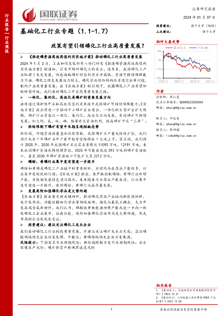 国联证券:基础化工行业专题:政策有望引领磷化工行业高质量发展?.pdf