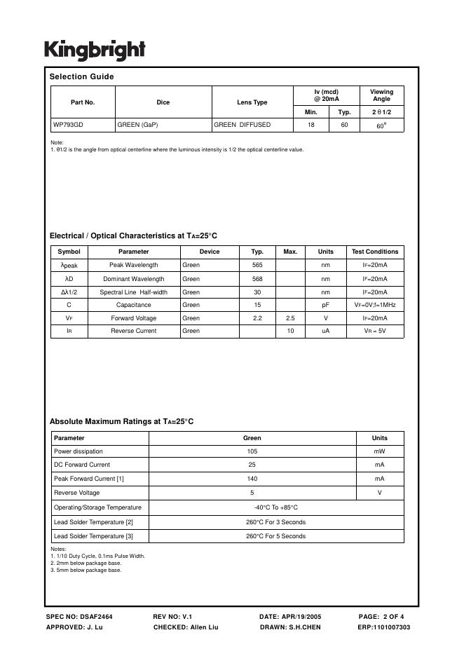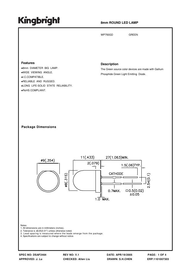 KINGBRIGHT - SPEC NO: DSAF2464 REV NO: V.1 DATE: APR/19/2005 8mm ROUND LED LAMP 数据手册.pdf