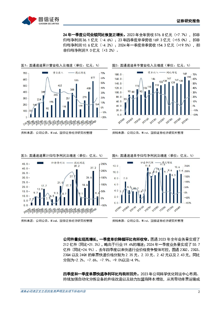 国信证券:圆通速递(600233)-快递主业经营稳健,盈利恢复稳定增长态势.pdf
