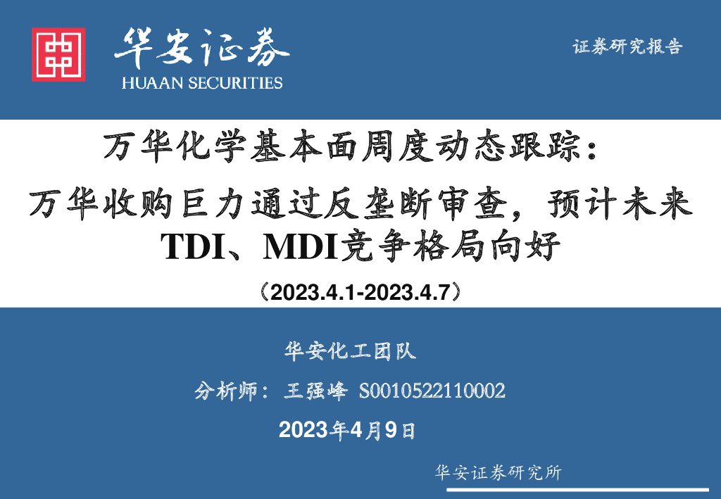 华安证券:万华化学基本面周度动态跟踪:万华收购巨力通过反垄断审查,预计未来TDI、MDI竞争格局向好.pdf