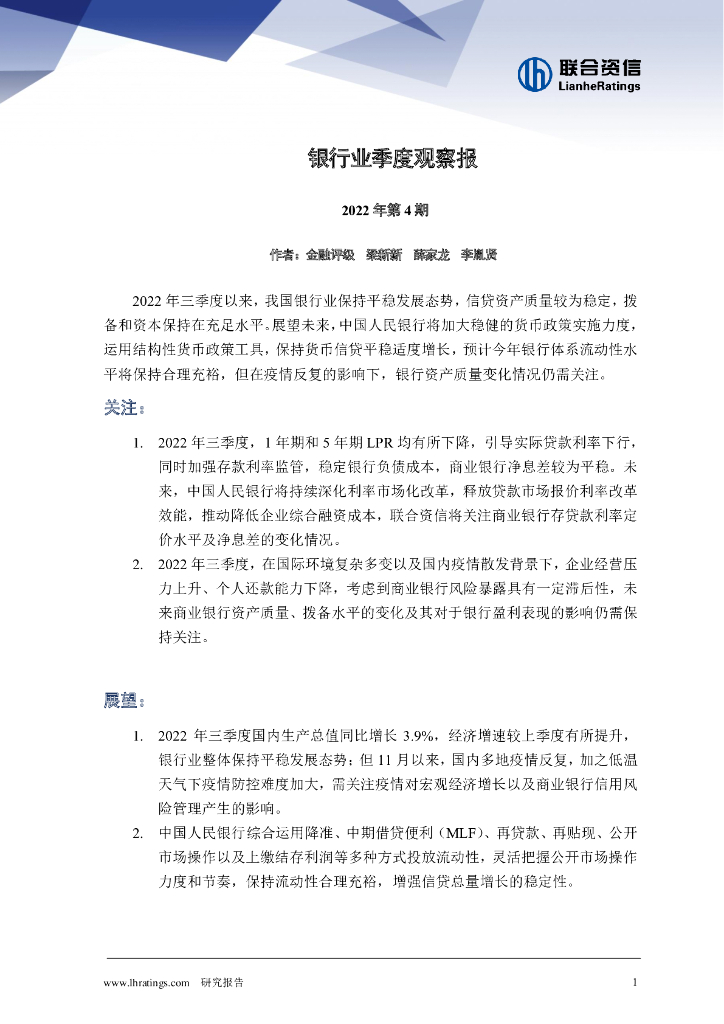 联合资信:银行业季度观察报(2022年第4期).pdf