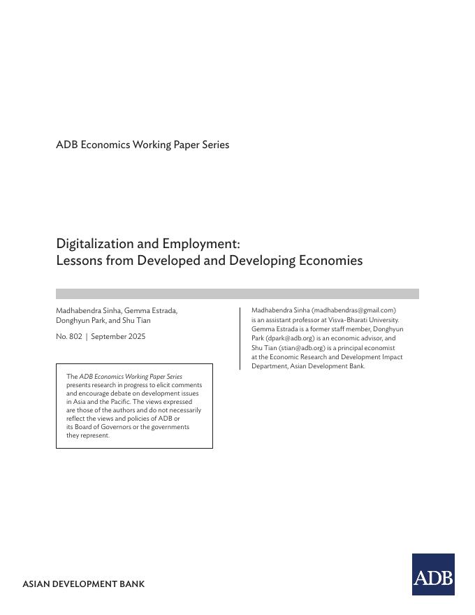 ADB亚洲开发银行:数字化与就业:发达经济体和发展中经济体的经验教训(英文版).pdf