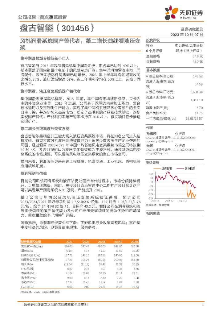 天风证券:盘古智能(301456)-风机润滑系统国产替代者,第二增长曲线看液压变桨.pdf