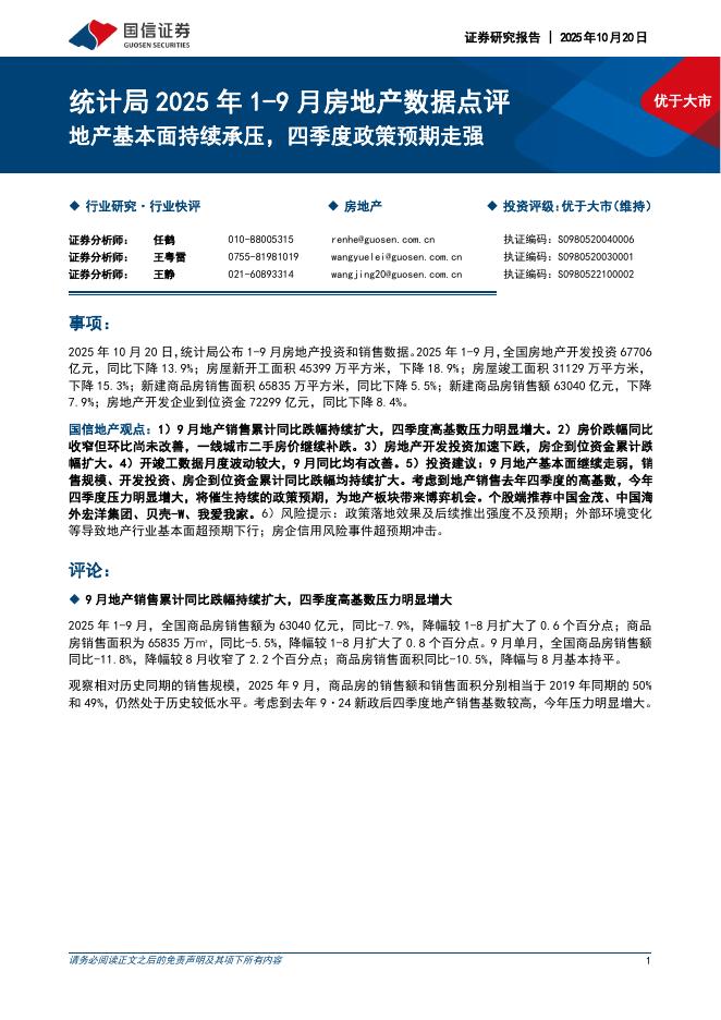 国信证券:统计局2025年1-9月房地产数据点评:地产基本面持续承压,四季度政策预期走强.pdf