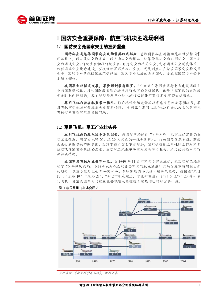 首创证券:国防军工行业深度报告:军工产业排头兵,军用飞机更新列装迎高峰.pdf