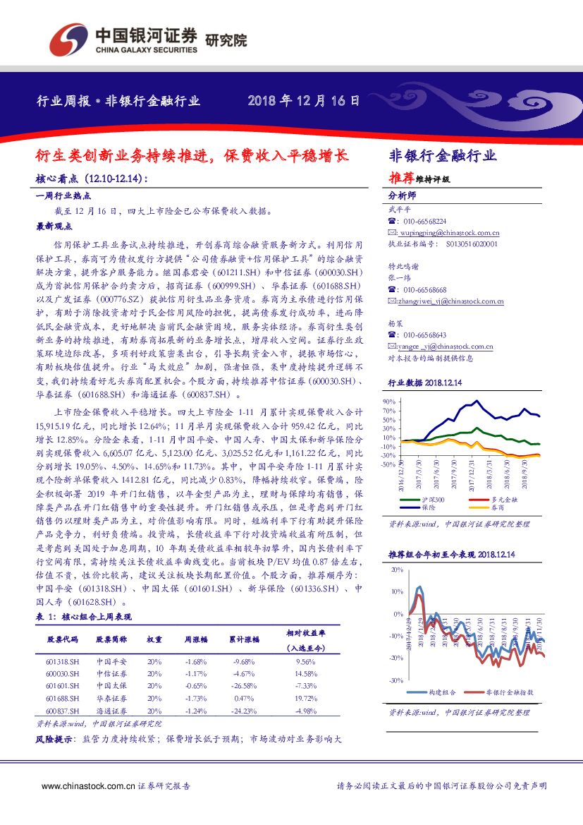 中国银河:非银行金融行业周报:衍生类创新业务持续推进,保费收入平稳增长.pdf