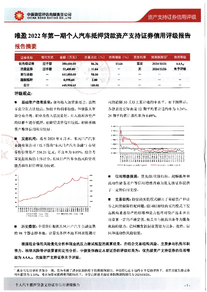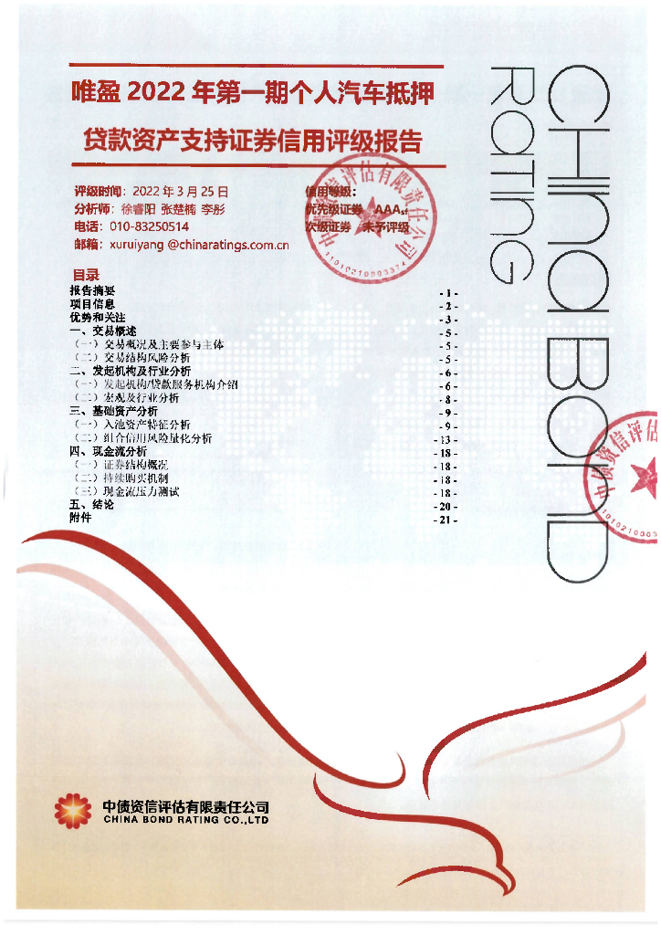 中债资信:唯盈2022年第一期个人汽车抵押贷款资产支持证券信用评级报告及跟踪评级安排.pdf