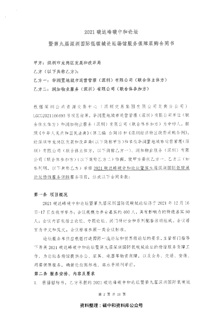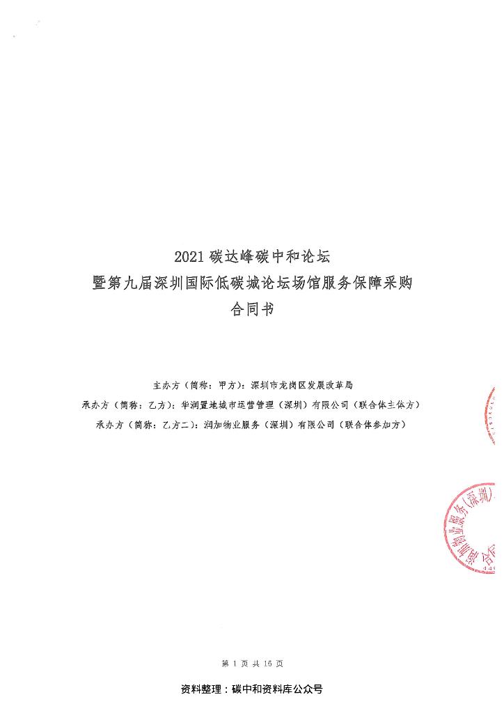 【中标】2021碳达峰碳中和论坛暨第九届深圳国际低碳城论坛场馆服务保障采购合同资料.pdf