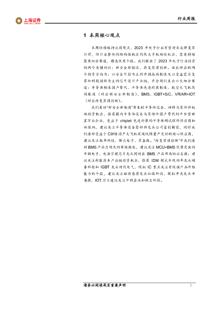 上海证券:电子行业周报:ChatGPT相关算力芯片引关注,继续看好消费复苏产业链.pdf