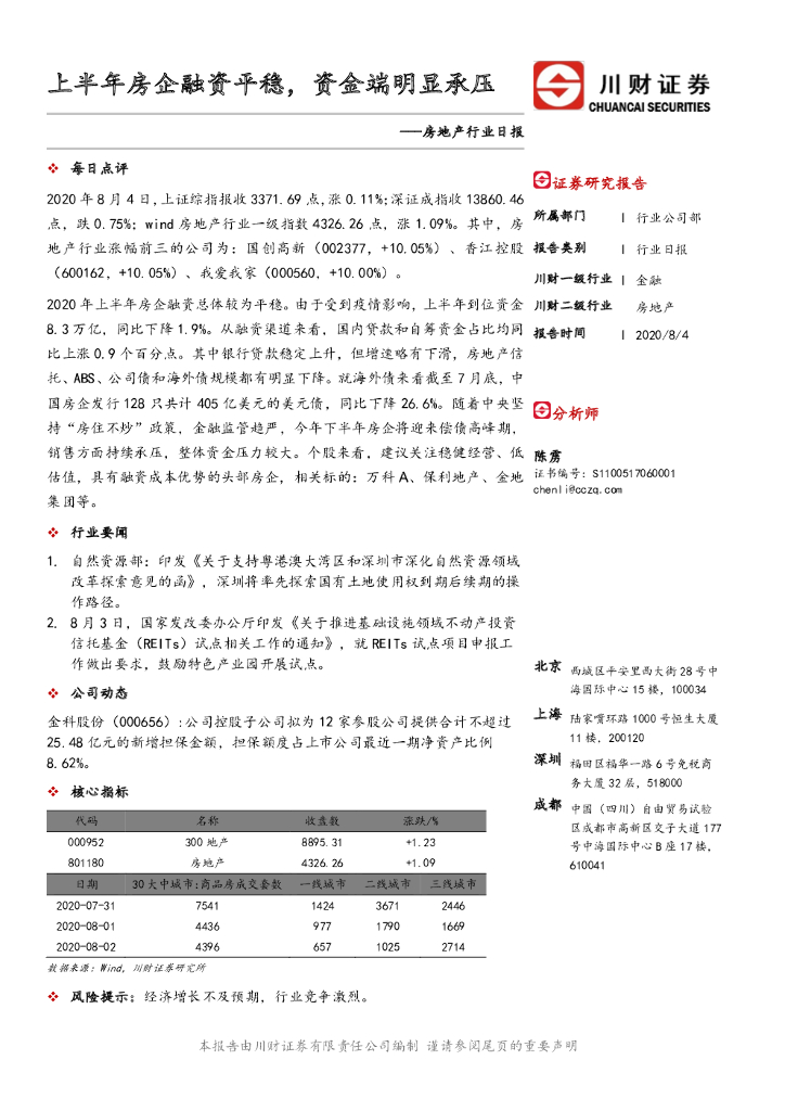 川财证券:房地产行业日报:上半年房企融资平稳,资金端明显承压.pdf