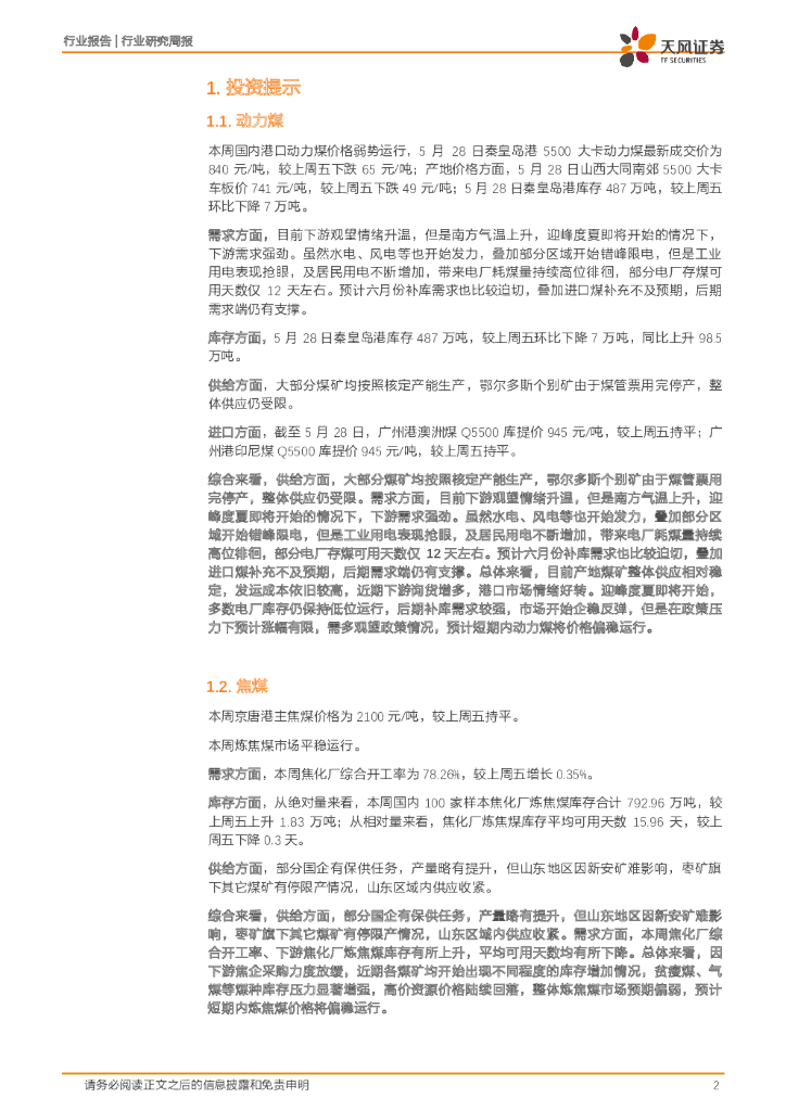 天风证券:煤炭开采行业:“迎峰度夏”来临,动力煤价支撑仍在.pdf