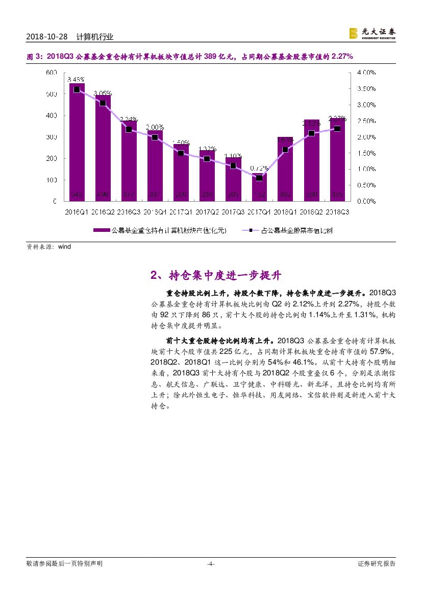 光大证券:2018Q3公募基金计算机板块持仓跟踪:持仓比例上升,持股进一步集中.pdf
