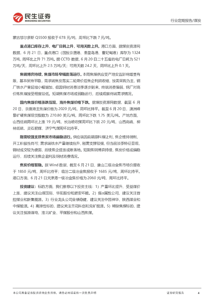 民生证券:煤炭周报:供给延续收缩,迎峰度夏有望开启煤价加速上涨行情.pdf