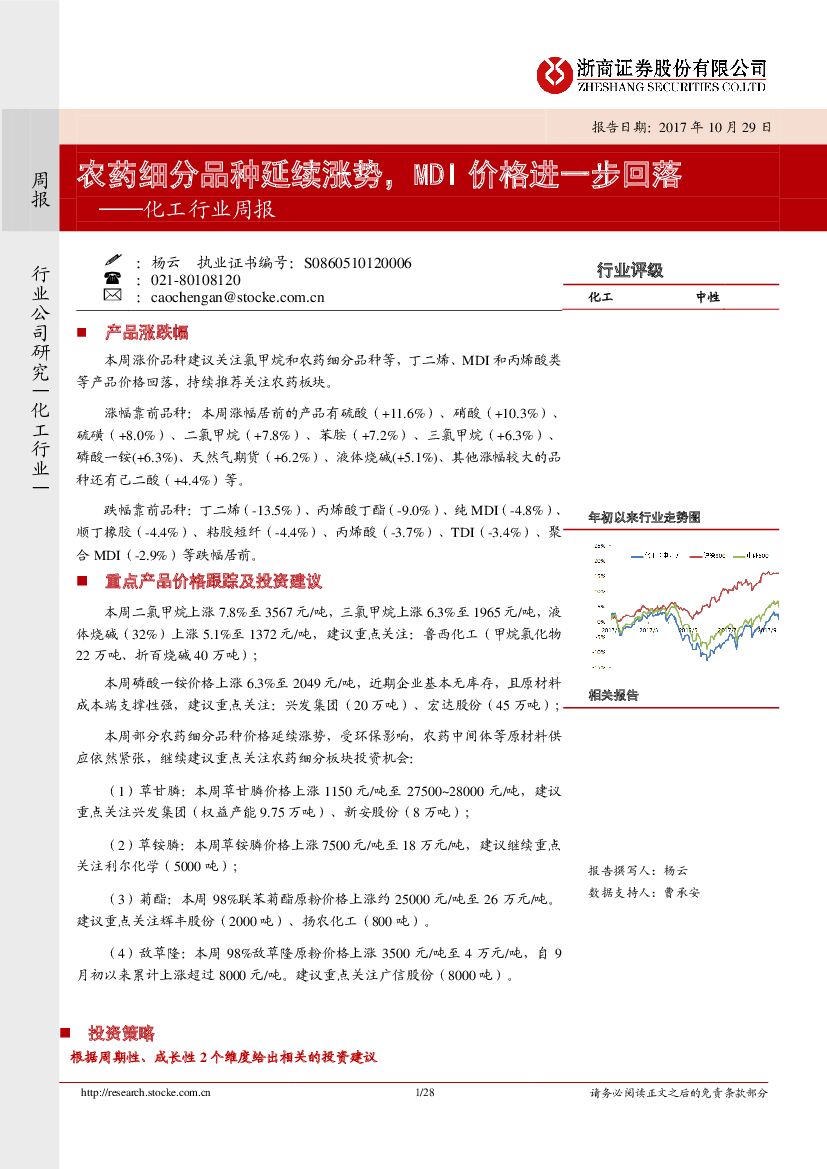 浙商证券:化工行业周报:农药细分品种延续涨势,MDI价格进一步回落.pdf
