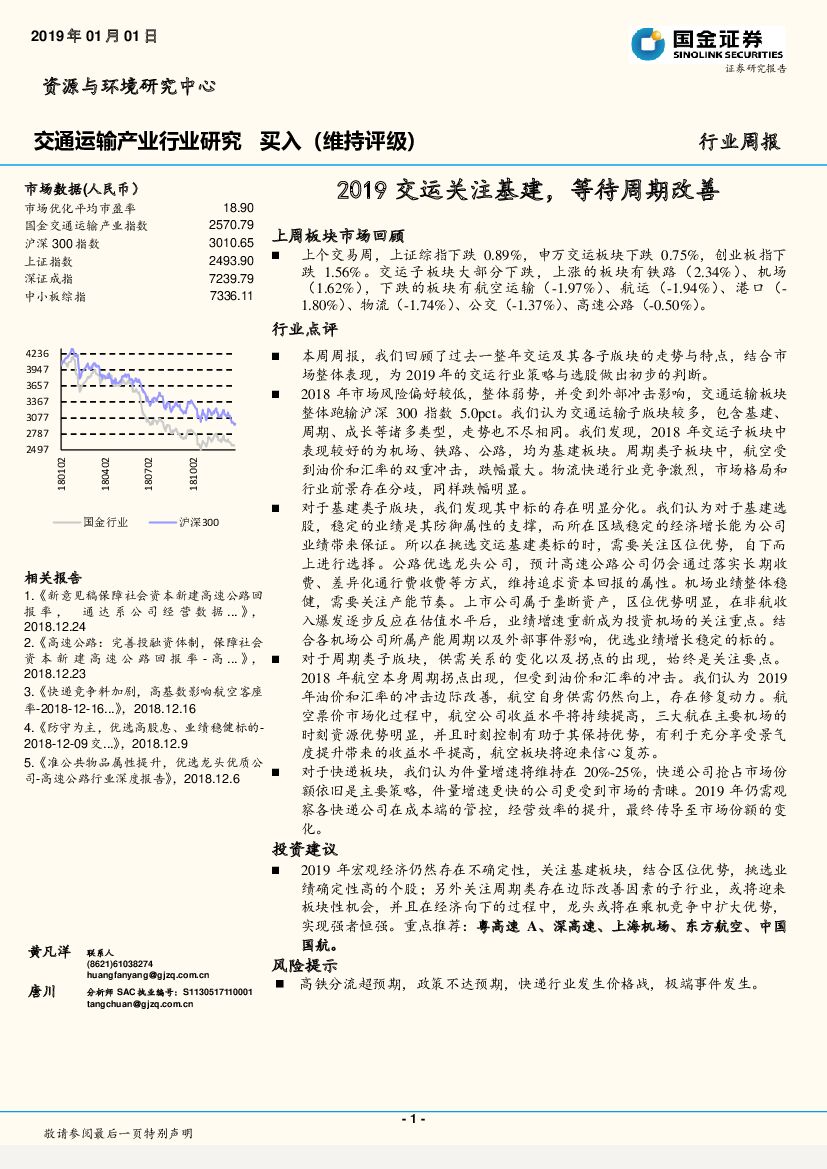 国金证券:交通运输产业行业研究:2019交运关注基建,等待周期改善.pdf
