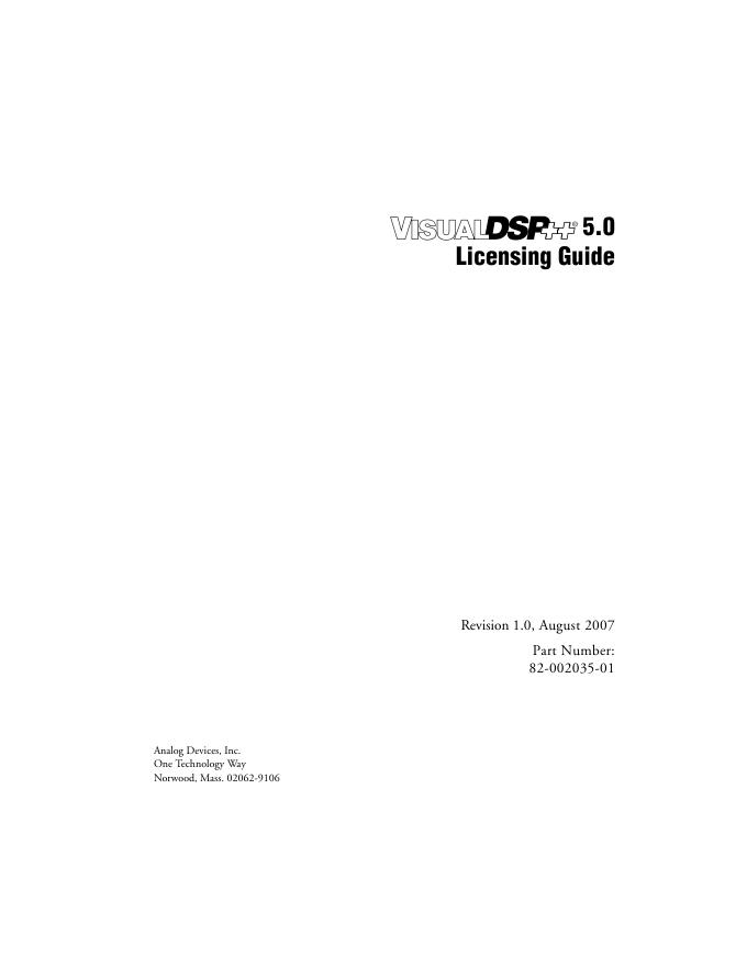 ANALOG DEVICES VisualDSP 5.0 Licensing Guide (Revision 1.0, August 2007).pdf