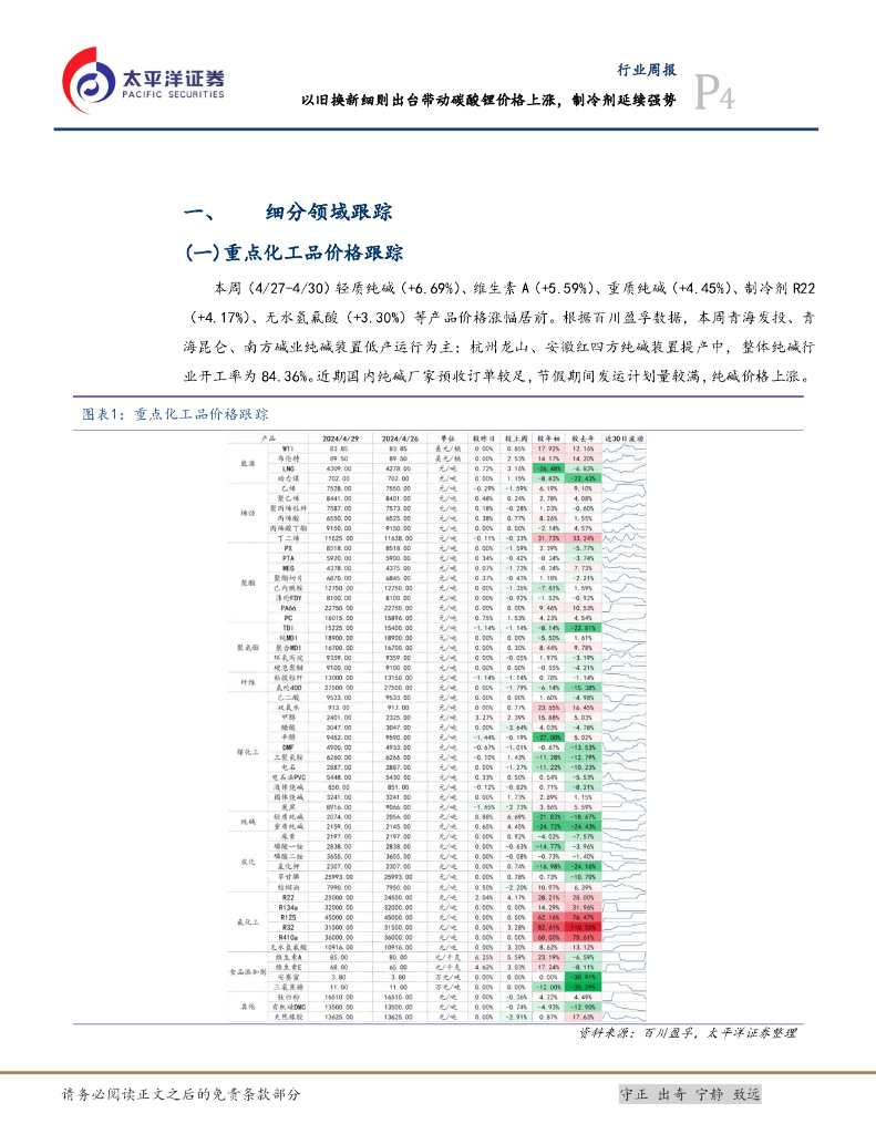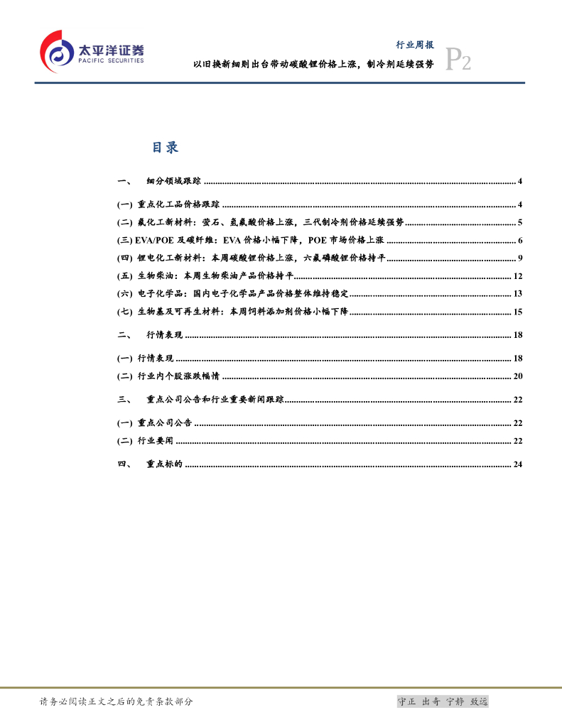 太平洋证券:化工新材料行业周报:以旧换新细则出台带动碳酸锂价格上涨,制冷剂延续强势.pdf