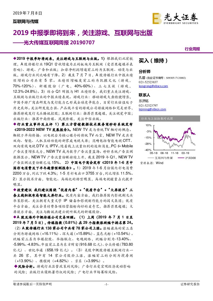 光大证券:光大传媒互联网周报:2019中报季即将到来,关注游戏、互联网与出版.pdf