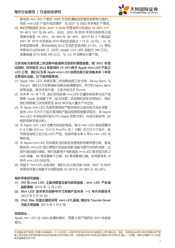 天风国际证券:电子行业苹果研究:MiniLED自4Q20起爆发增长,预期6款产品将在2021年底前面市.pdf