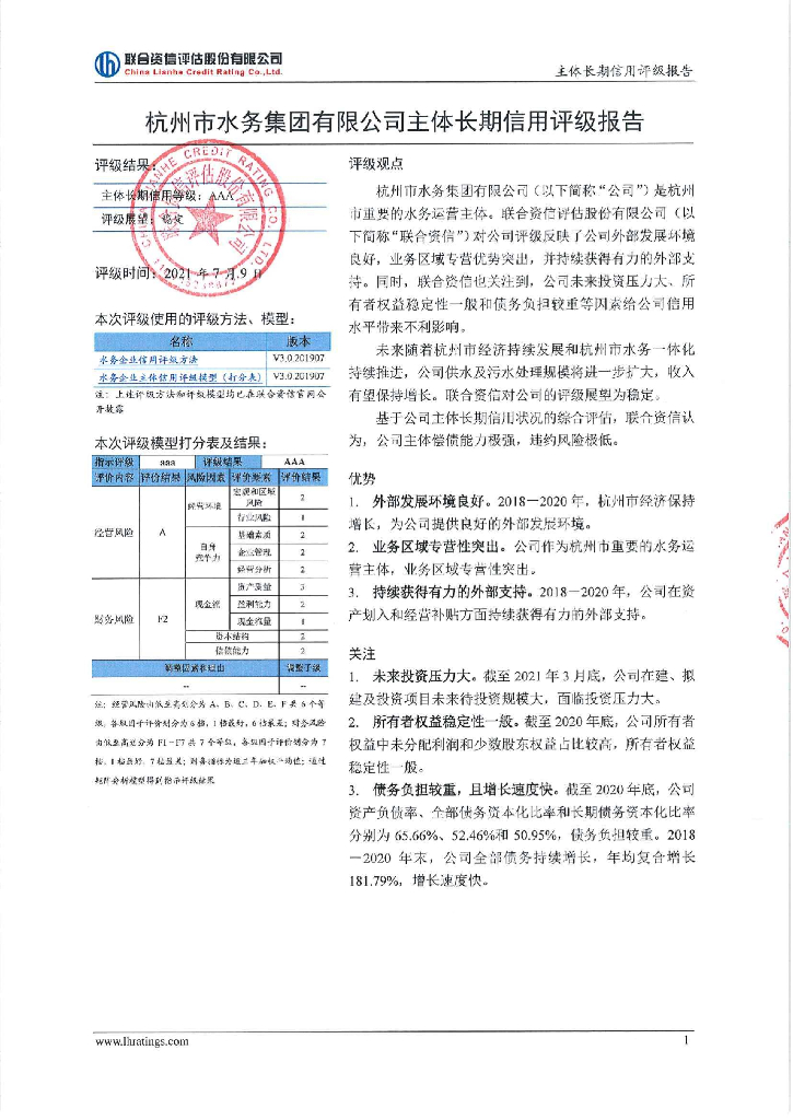 联合资信:杭州市水务集团有限公司主体长期信用评级报告.pdf