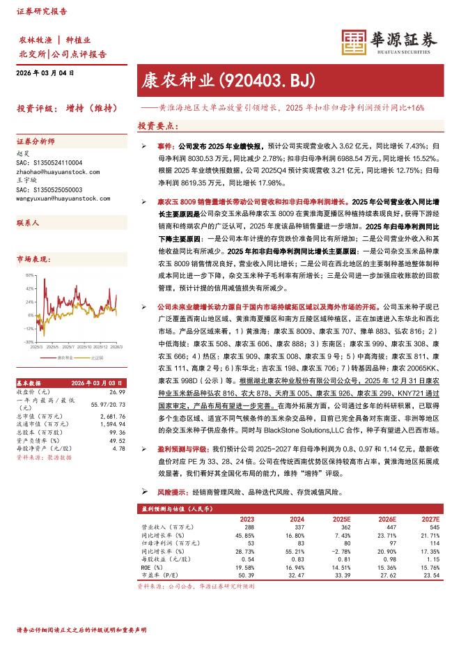 华源证券:康农种业(920403)-黄淮海地区大单品放量引领增长,2025年扣非归母净利润预计同比+16%.pdf