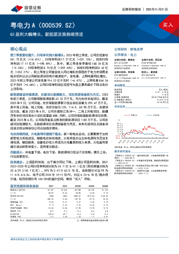 国信证券:粤电力A(000539)-Q3盈利大幅增长,新能源发展持续推进.pdf