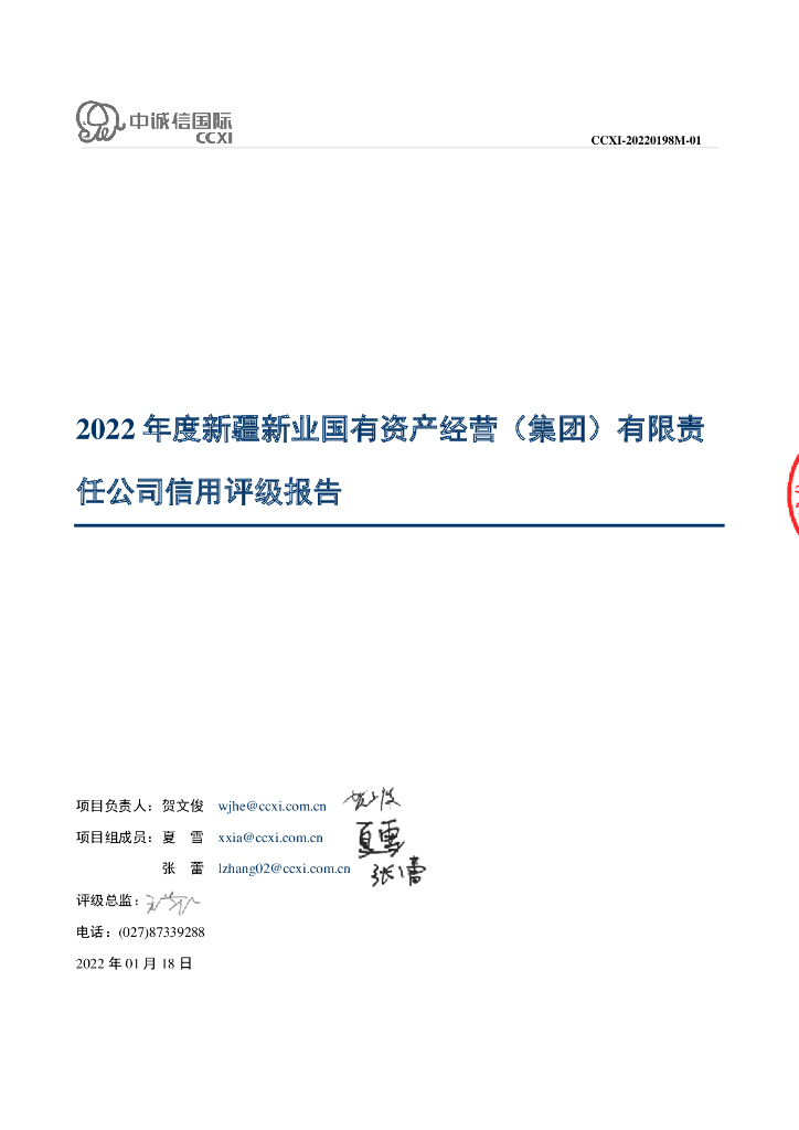 中诚信:新疆新业国有资产经营(集团)有限责任公司2022年度主体信用评级报告.pdf