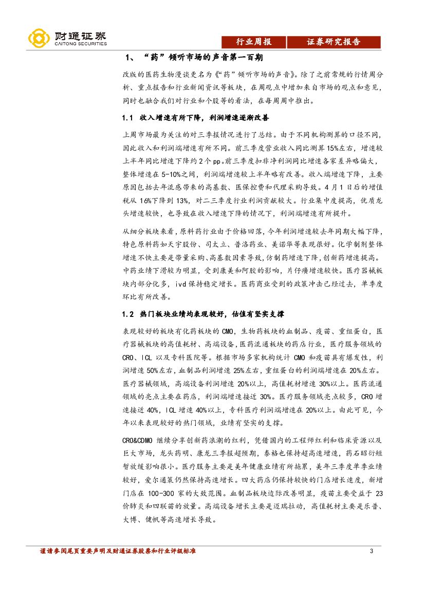 财通证券:“药”倾听市场的声音第一百期:三季报热门板块业绩均表现较好.pdf