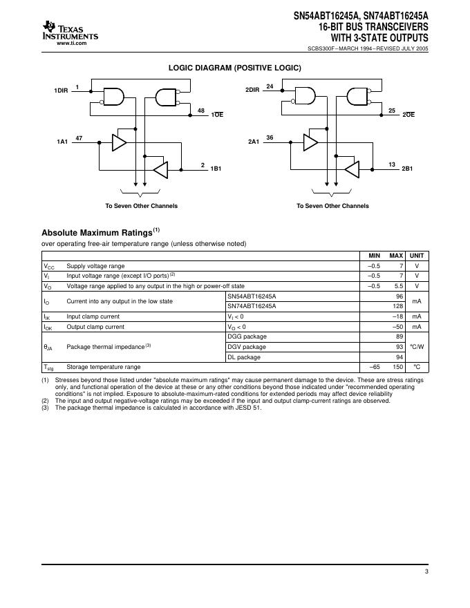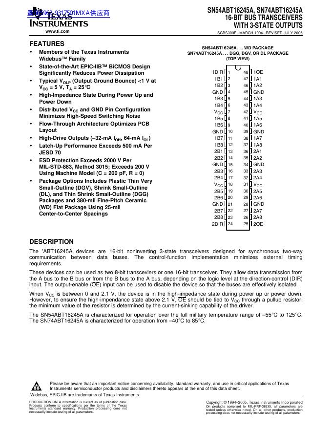 TEXAS INSTRUMENTS SN54ABT16245A/SN74ABT16245A 数据手册.pdf