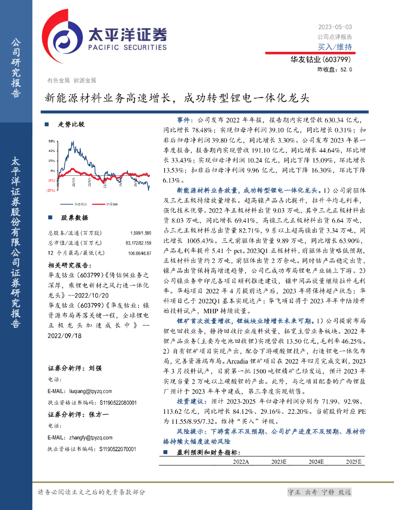 太平洋证券:华友钴业(603799)-新能源材料业务高速增长,成功转型锂电一体化龙头.pdf