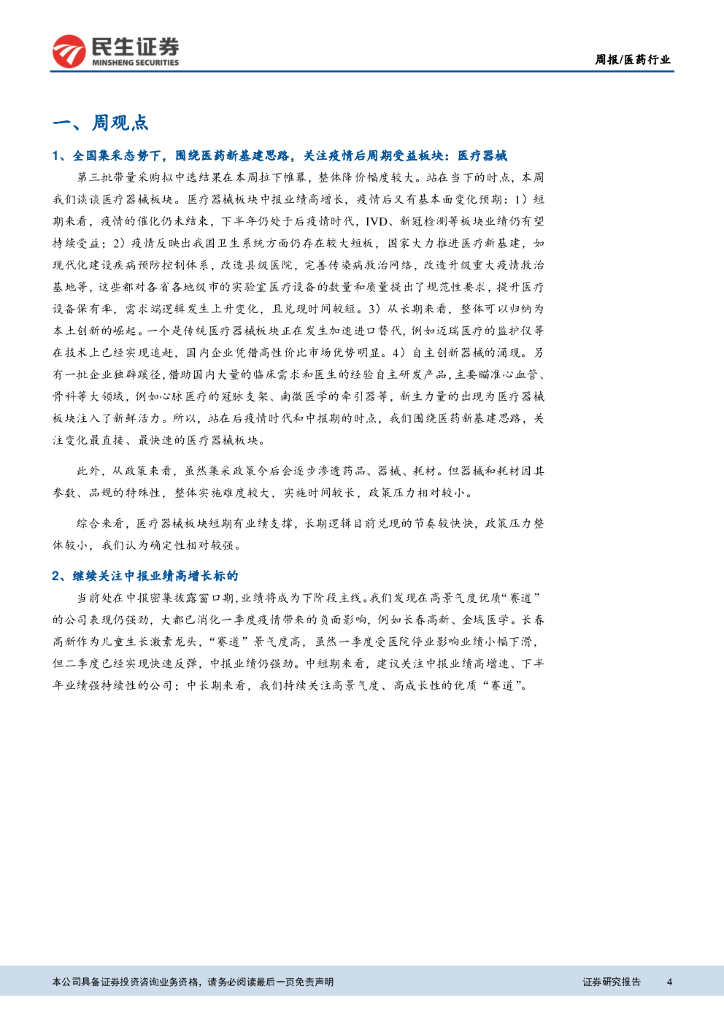 民生证券:医药行业周报:围绕医药新基建思路关注医疗器械板块.pdf