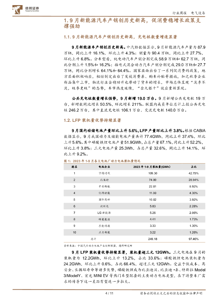 德邦证券:电气设备行业周报:9月新能源汽车产销创历史新高,促消费稳增长政策支撑强劲.pdf