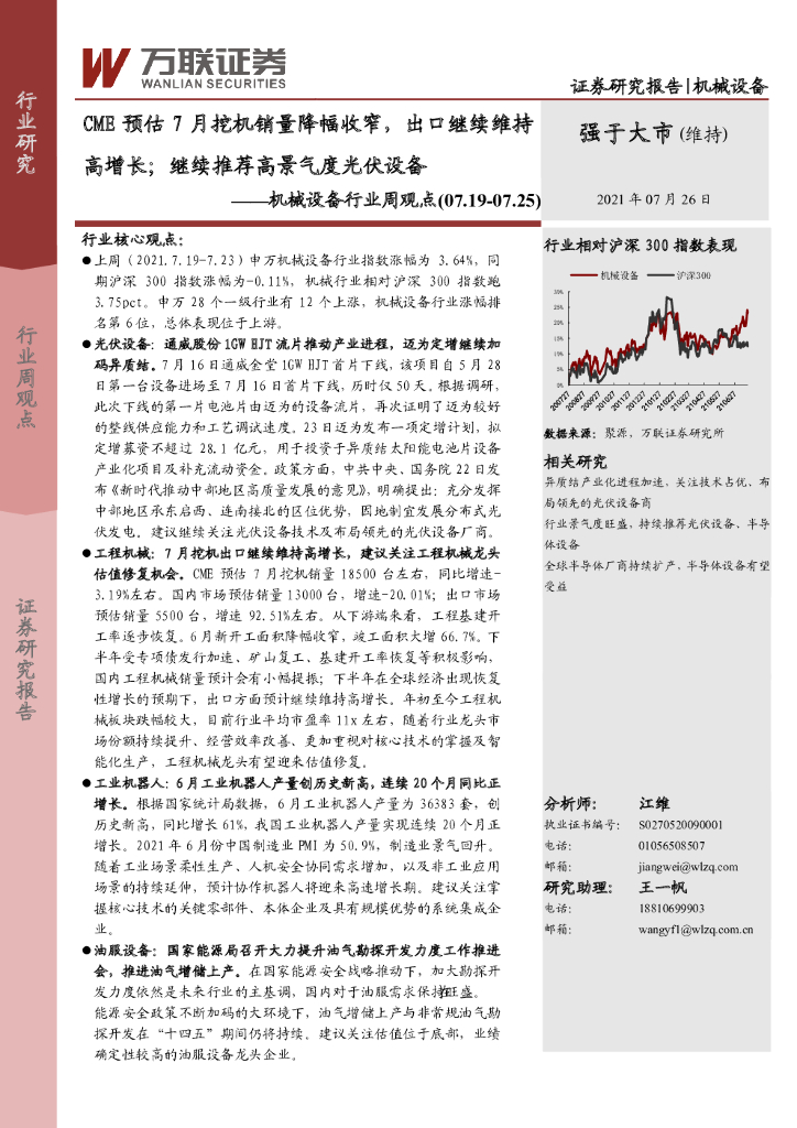 万联证券:机械设备行业周观点:CME预估7月挖机销量降幅收窄,出口继续维持高增长;继续推荐高景气度光伏设备.pdf