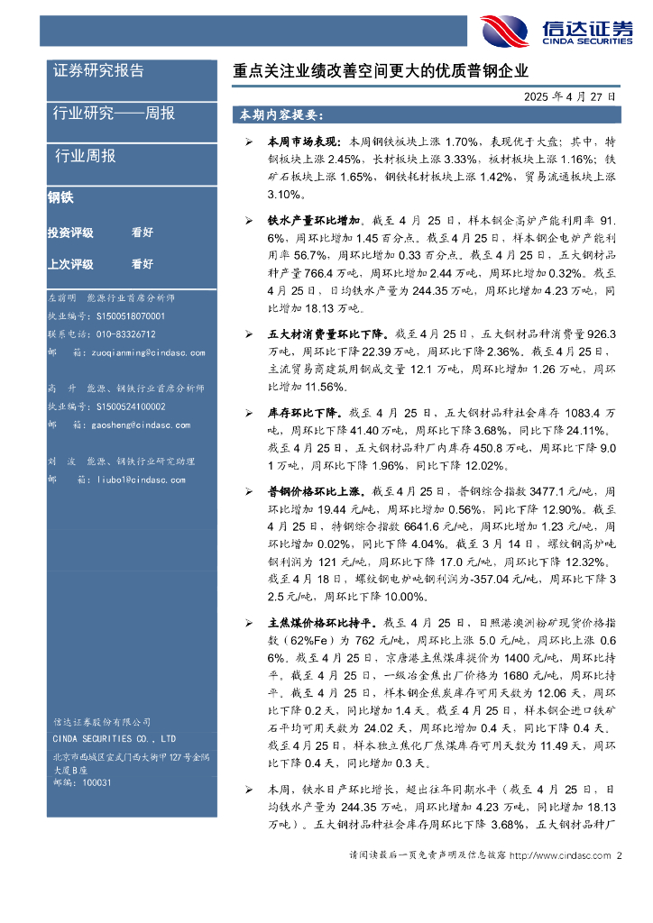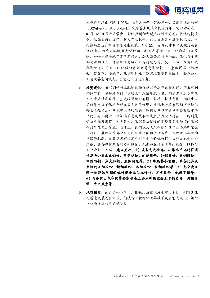信达证券:重点关注业绩改善空间更大的优质普钢企业钢铁.pdf